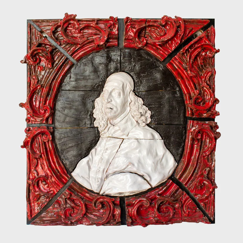 Guiseppe Ducrot, nacido en 1966, un destacado ceramista italiano, es un escultor conocido y exitoso que vive y trabaja en Roma. Ver www.guiseppeducrot.it Este gran retrato de cerámica (ritratto ceramica) de Leopoldo de Medici, con su conciencia contemporánea pero fuerte referencia al barroco, es un buen ejemplo de su trabajo.