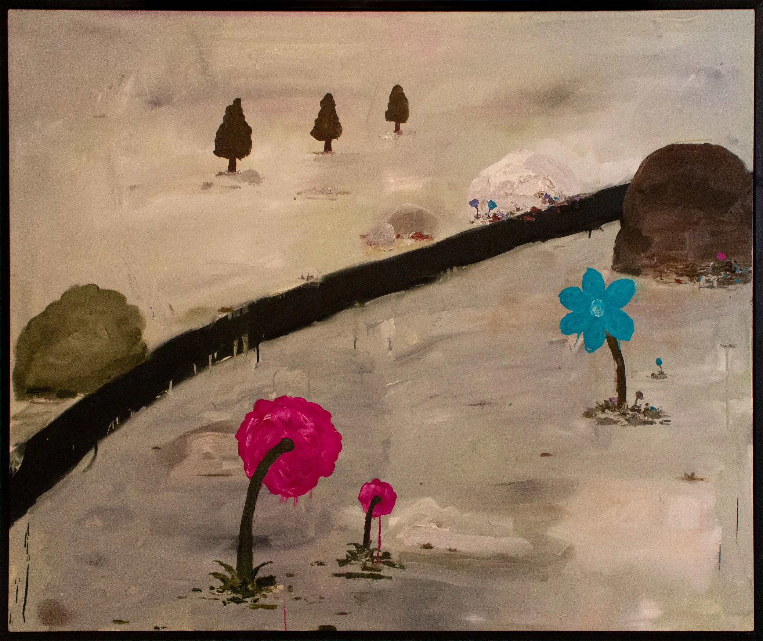 George se formó en la Escuela de Arte de Menorca y luego en Inglaterra en la Arts University de Bournemouth de 2014 a 2017. Ahora trabaja como diseñador e ilustrador de UX en Madrid. Creó esta imagen para la exposición del vigésimo aniversario de la Fundación, que se llevó a cabo en septiembre de 2022. Posteriormente, la regaló a la Fundación. En las notas del catálogo de la exposición, escribió: “Pintura al óleo de una ilustración digital anterior, lo que me empuja a repensar cómo enfoco la pintura y cómo puede encajar con mi trabajo más reciente creado principalmente con un iPad. Al aplicar color en capas, bloquear formas y colorear rápidamente, de la misma manera que dibujo digitalmente, puedo trabajar en la atmósfera y las texturas, transformando el dibujo digital 2D original en una escena pintada”.