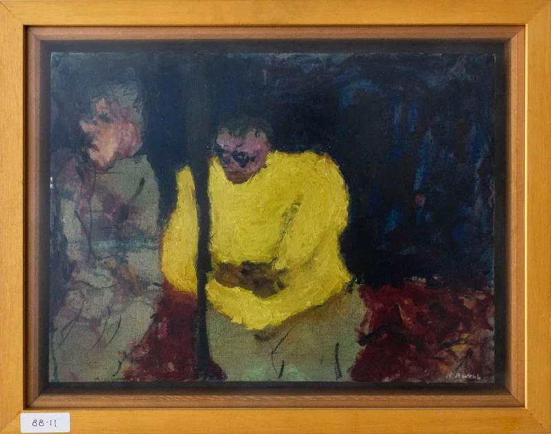 Richard Webb nació en 1963 y asistió a la Escuela de Arte y Artesanía de Camberwell desde 1982 hasta 1985, donde obtuvo su licenciatura. Luego pasó a estudiar su maestría en el Royal College, que obtuvo en 1988. Después de comprar estas obras, mantuvimos contacto con él durante un tiempo, y vino a pasar una temporada con nosotros en la costa de Essex en 1990, donde, más tarde, nos dijo que el mar y la arena le inspiraron para una de sus obras posteriores, “Triple Eco”, que representa a tres gaviotas y a una niña pequeña en una extensión de playa.