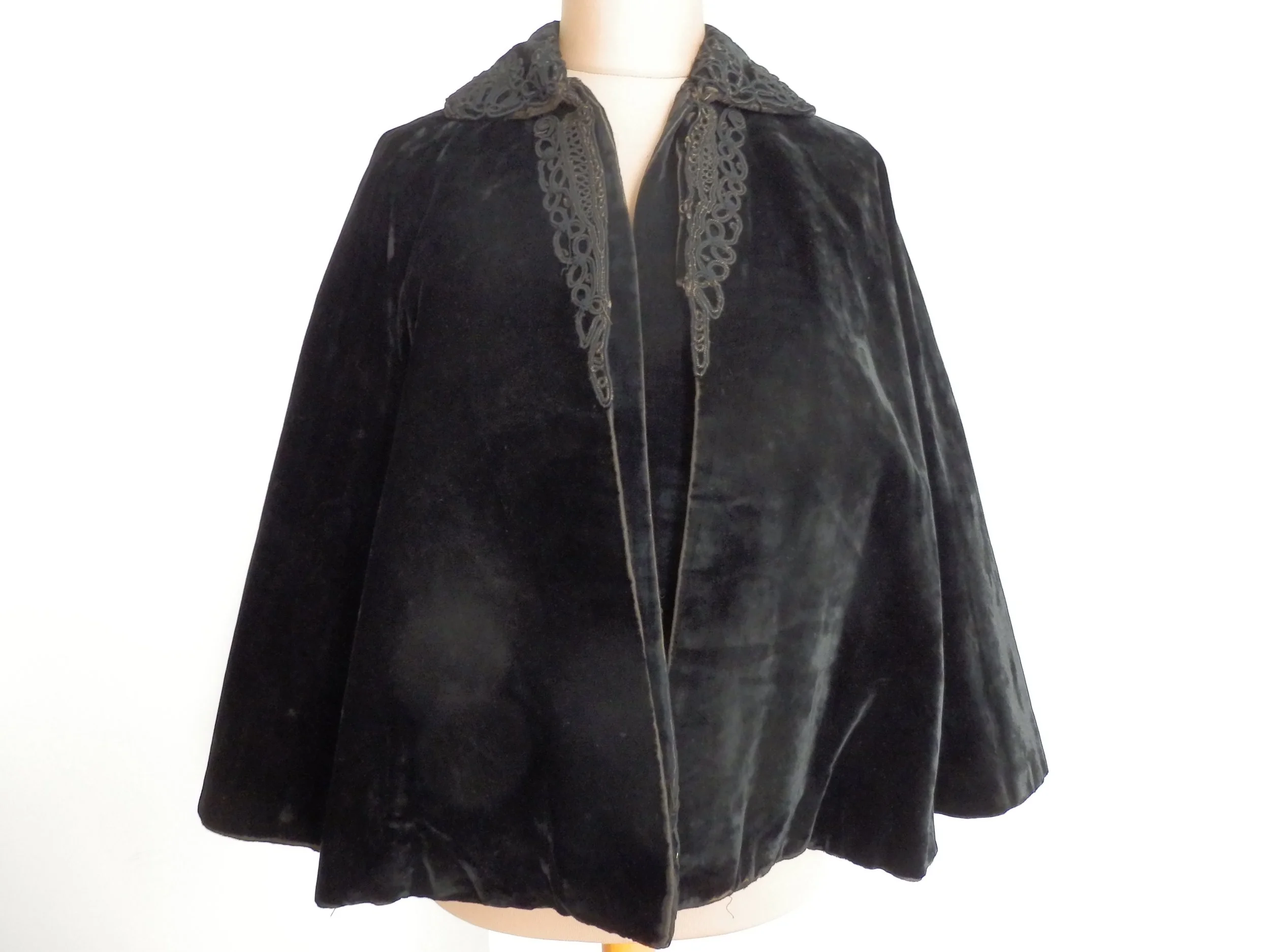 Description: Black figured silk mantle (A Stedall - label) with lace and jet.